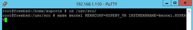 Ok, o processo de compilação do kernel do FreeBSD terminou e agora precisamos informar para o sistema utilizar o Kernel Compilado com os drivers do Hyper-V. Entre no diretório /boot do sistema e siga as instruções abaixo: