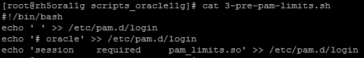 O Terceiro script chamado de “3-pre-pam-limits.sh” insere os parâmetros no arquivo “/etc/pam.d/login” para o Oracle suportar a utilização da biblioteca pam.