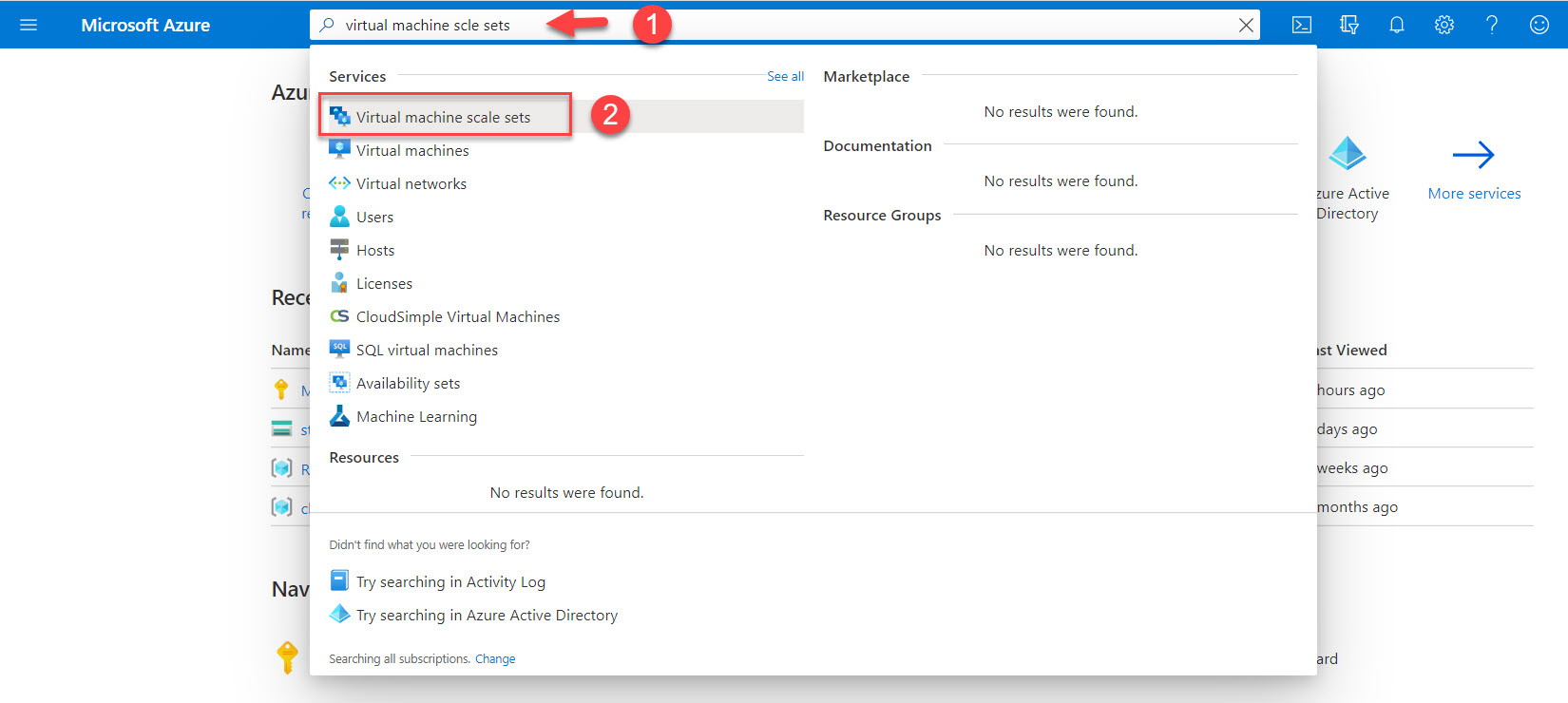 04 – Agora, vamos iniciar a criação do virtual machine scale sets. No portal do Azure pesquise por Virtual machine scale sets.