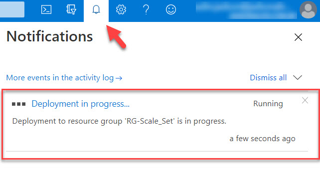 15 – No ícone de notificação também podemos observar que nosso recurso está sendo provisionado.
