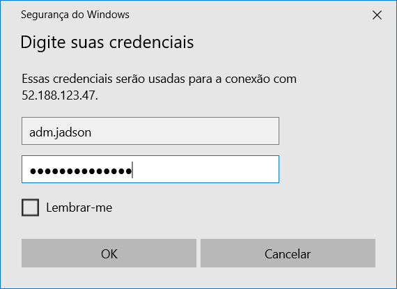 23 – Após baixar o arquivo RDP, faça login com usuário e senha definidos na configuração do scalet set.