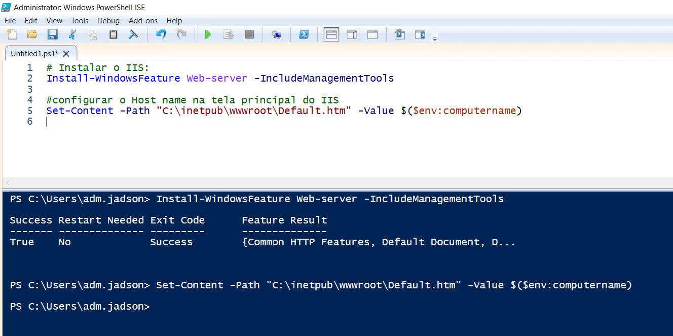 Vamos instalar a feature do IIS e executar um script para mostrar na tela principal do IIS o nome do host.