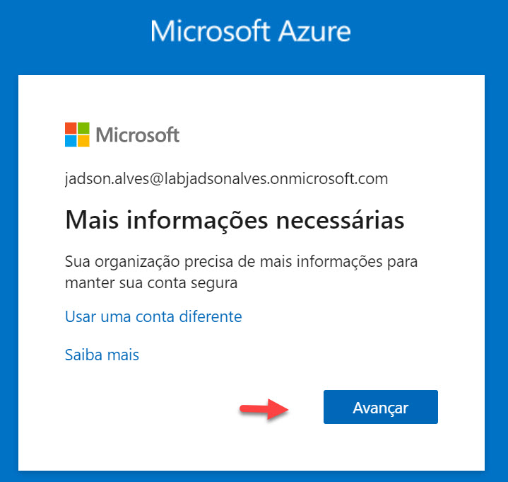 24 – O usuário receberá a solicitação de configuração do MFA. Clique em Avançar para continuar.