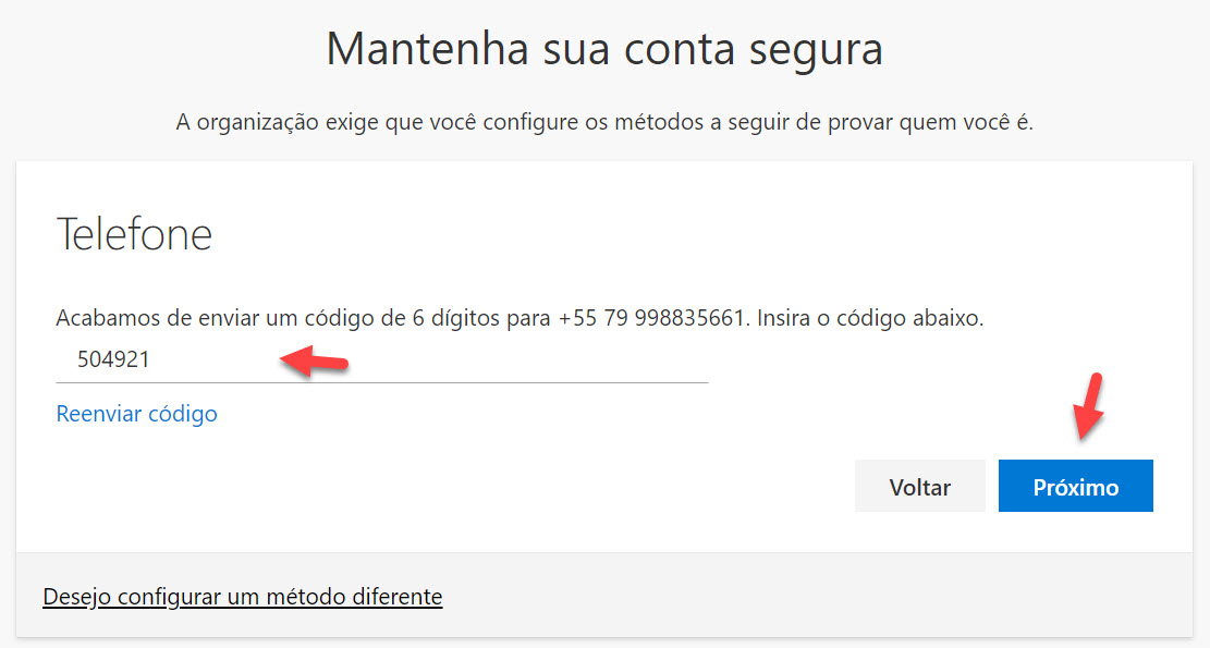 30 – Digite o código de verificação enviado para seu telefone e clique em Próximo.