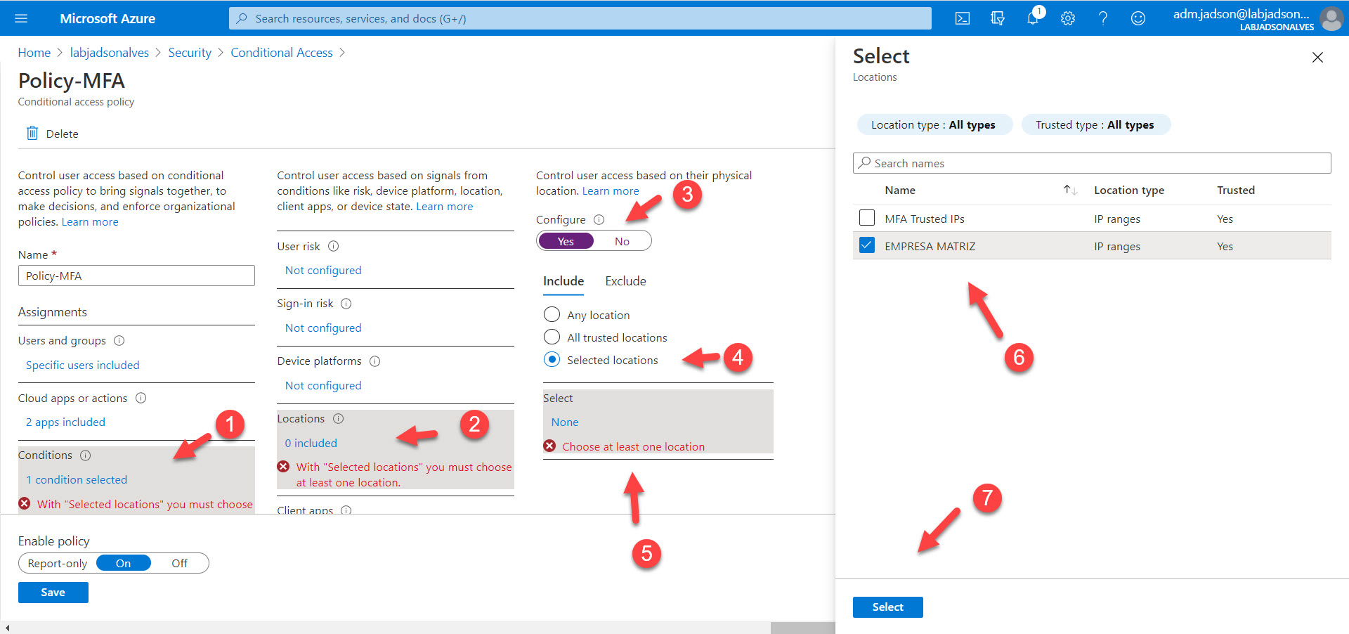 48 – Vou adicionar a política de Named location na política do Conditional Acesses.